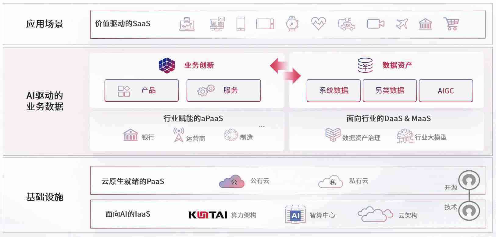 数字时代,,围绕企业数字化转型的关键要素,,,,EBPAY钱包官网数码开创性的提出数云融合战略和技术体系框架,,,着力在云原生、、、、数字原生、、、AI原生和信创产业上架构产品和服务能力,,为处在不同数字化转型阶段的快消零售、、、、汽车、、金融、、、医疗、、、、政企、、教育、、、、运营商等行业客户提供泛在的敏捷IT能力和融合的数据驱动能力,,,构建跨界融合创新的数字业务场景和新业务模式,,,助力企业级客户建立面向未来的核心能力和竞争优势,,,,全面推动社会的数字化、、、、智能化转型升级。。。。